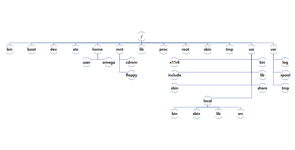 최상위 디렉터리(/) 아래로 계층적 트리🌲 구조